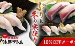 クーポン付!海鮮アトムで脂のり抜群の「ぶり」、濃厚な旨味が広がる「甘鯛」や「牡蠣」を味わおう!