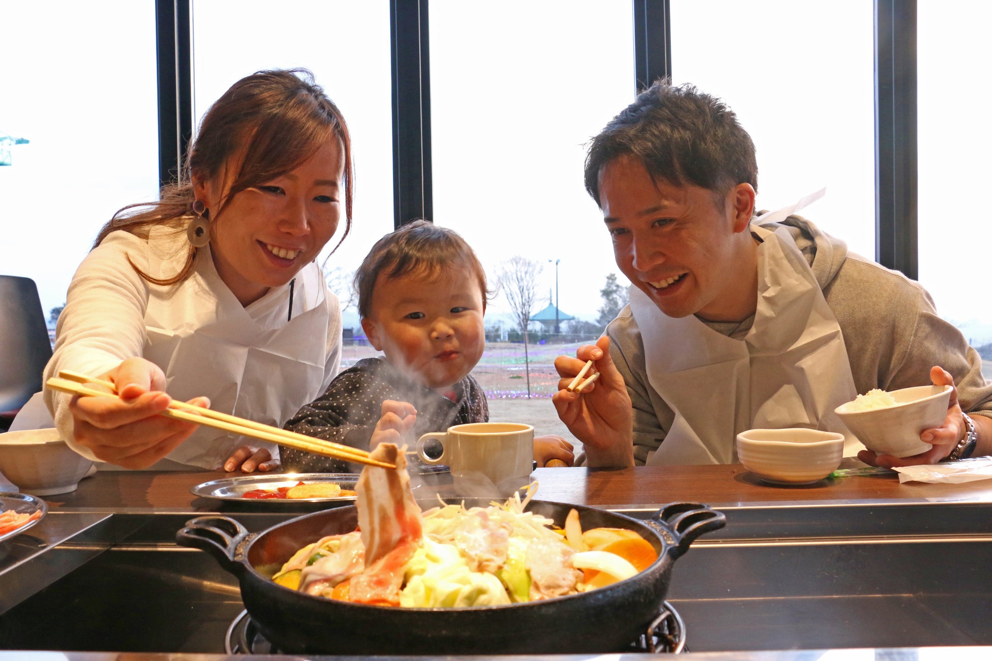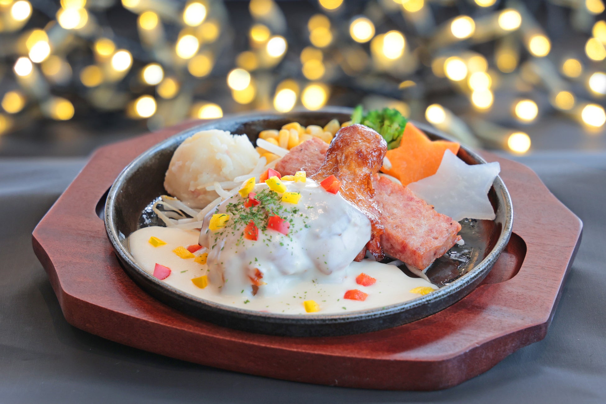 毎年大好評!マザー牧場の定番グルメ「ジンギスカン」またはイルミネーション限定メニュー「名水もち豚のせいろ蒸し」のどちらかを選んでたのしめる90分間の食べ放題です。サイドメニューも充実!