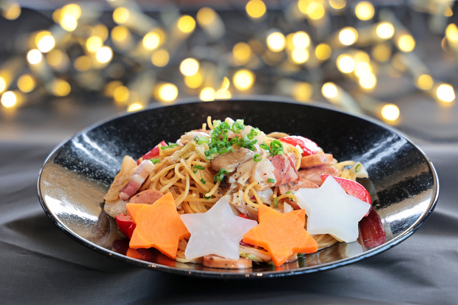 ◆自家製ソーセージ・ベーコンと冬野菜の黒アヒージョオイルパスタ
