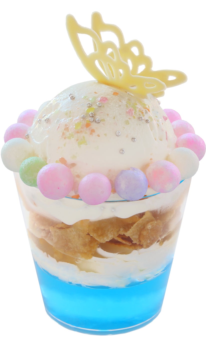 ソーダゼリーにソフトクリームと妖精の羽をトッピングした“映えメニュー”!