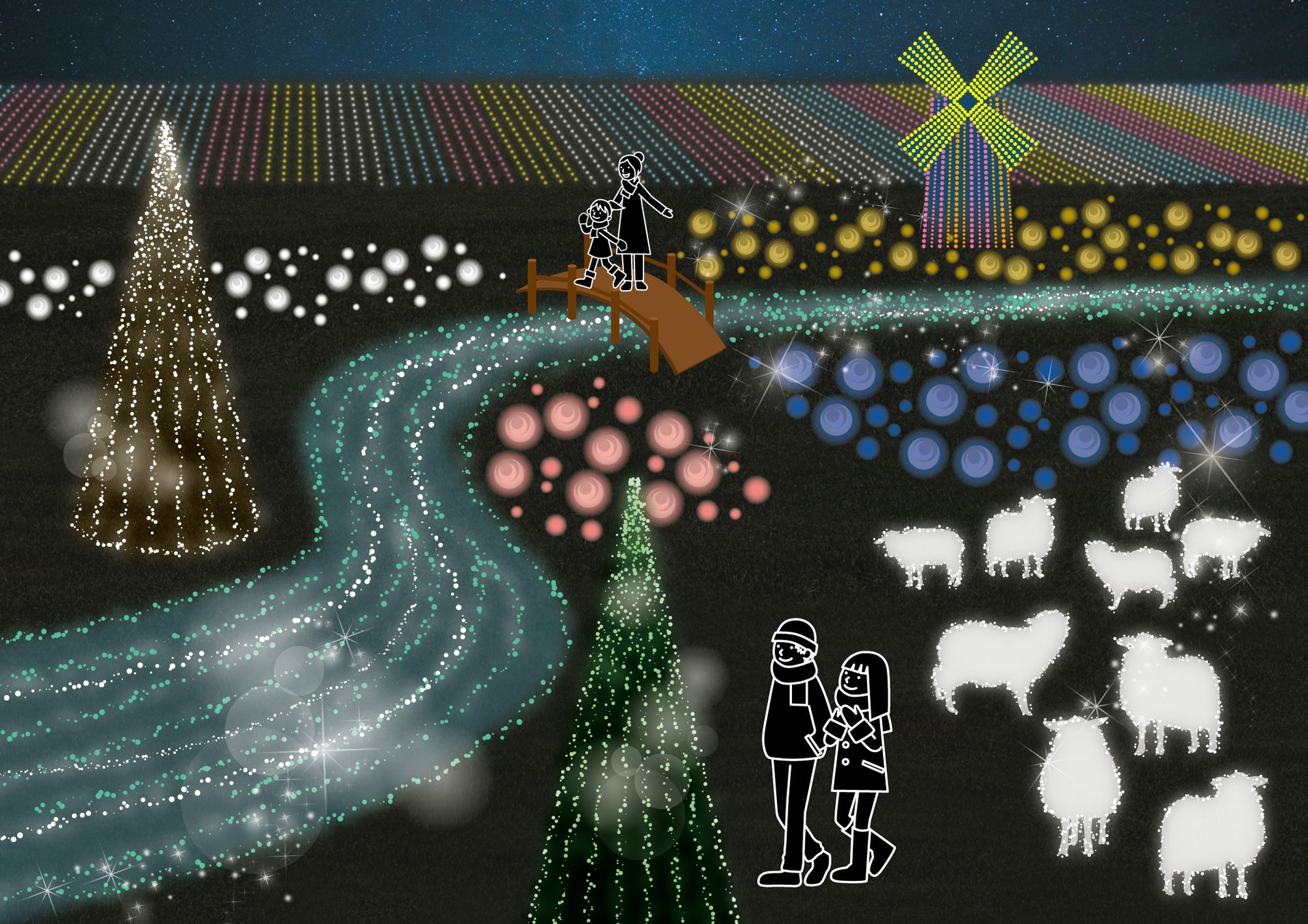 さらに!今年は、「自然を大切にするマザー牧場にすみついた妖精たちの国」をテーマにした新エリアやフォトスポットが数々新登場し、より幻想的な世界を展開します。ほかにも、牧場らしい動物のイルミネーションや昨年お子さまに大人気だった触れるとカラフルに光り音が鳴る体験型ステップイルミなどのスポットもあり大人から子どもまで幅広くお楽しみいただけます。