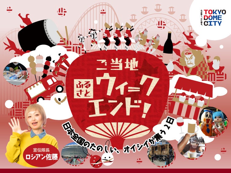 『ご当地よいどれ市2024』では、約300種類以上のローカル“じまん酒”が登場し、全国各地のオイシイグルメとともに飲食を楽しんでいただけます。さらに、土日のみ開催の『ご当地ふるさとウィークエンド!』では、日本全国の迫力満点のお祭りが一堂に会する催しや、マラソン・ランニング、サイクリング関連大会を紹介する「全国ご当地ラン&ライド2024」、全国各地のご当地キャラクターたちのPRを楽しめる「ご当地キャラ大集合」などのイベントも実施します。また、イベントの宣伝部長には、人気の料理系大食いYouTuberロシアン佐藤さんが就任し、本イベントの魅力を発信していただきます。